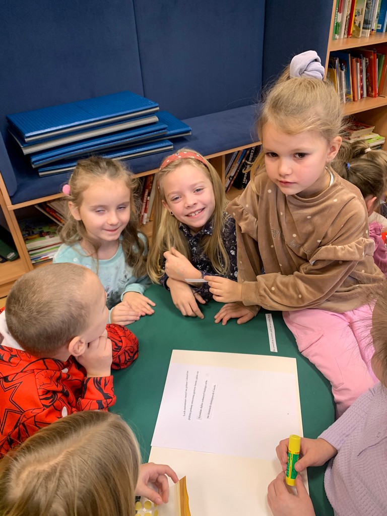 Na zakończenie uczniowie pracowali w grupach, tworząc wspólnie swoją pierwszą książkę o Lechu, Czechu i Rusie. Zajęcia były bardzo ciekawe, angażujące i pozwoliły dzieciom lepiej zrozumieć, jak powstaje książka.