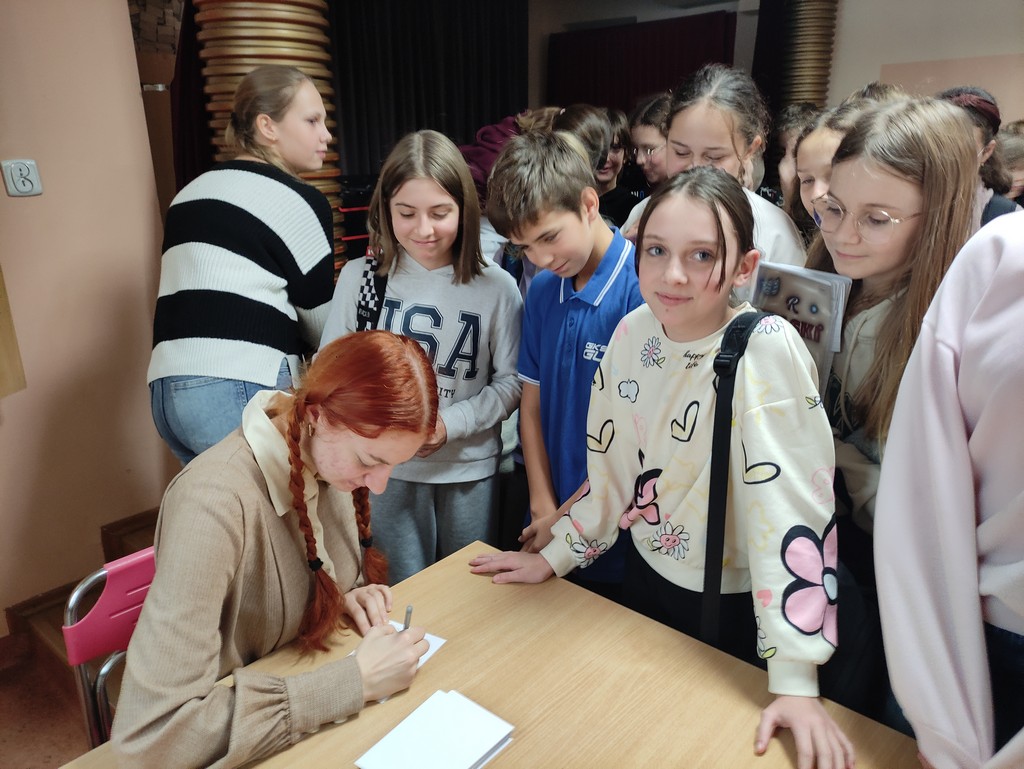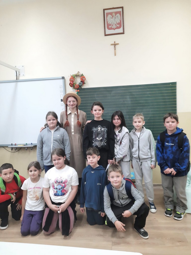 Na zakończenie wizyty Mai – Ani zrobiliśmy pamiątkowe zdjęcia, nie zabrakło także chętnych do zdobycia autografu młodej aktorki. Zarówno przedstawienie, jak i spotkanie okazało się dla jego uczestników niezwykle ciekawym wydarzeniem, miłą odmianą od nauki w tradycyjnej formie, ale także wyjątkową lekcją kultury, wrażliwości i otwartości na świat teatru, promującą słowo pisane i zachęcającą do lektury. Samo spotkanie z Mają, która po mistrzowsku wcieliła się w postać rudowłosej marzycielki, pozwoliło nam lepiej zrozumieć, ile wysiłku kryje się za każdym scenicznym gestem.