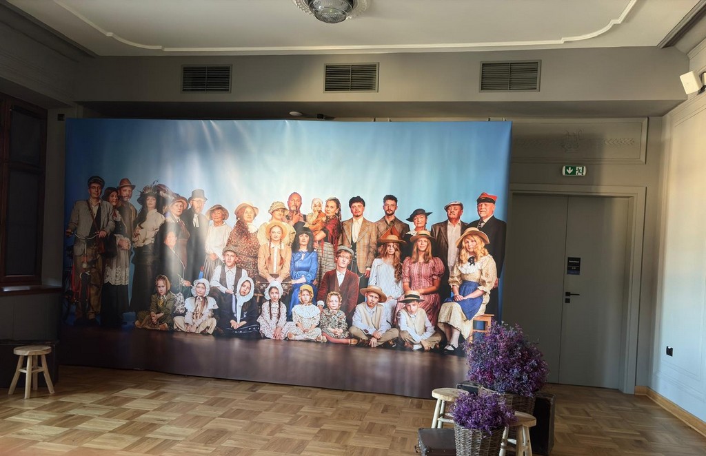 Podczas antraktu mieliśmy okazję zrobić sobie pamiątkowe zdjęcia w foyer ze wszystkimi aktorami tworzącymi galerię nietuzinkowych postaci spektaklu, utrwalonymi na obszernej planszy, a mniej liczna grupa trzecioklasistów zapozowała z Anią (nie Andzią) oraz Gilbertem, zaś dwa dni później gościliśmy w szkolnych murach naszą absolwentkę – Maję Miś, która w spektaklu zagrała tytułową rolę. Opowiedziała nam ona o kulisach swoich przygotowań do występu na scenie, o współpracy całego zespołu podczas prób i spektaklu, ale także o tym, jak ważne jest kulturalne zachowanie widowni podczas przedstawienia. Część tego spotkania była moderowana i składały się na nią wcześniej zapisane przez szóstoklasistów pytania, po czym nastąpił moment zadawania ich na żywo przez ochotników. Maja, która przybyła do nas w jednej ze scenicznych kreacji, już po swoich pierwszych wypowiedziach, zjednała sobie ponownie publiczność, gdyż całą sobą opowiadała o swojej pasji do żywego słowa, teatru, muzyki, jej początkach, rozwoju i planach na przyszłość, za które mocno trzymamy kciuki!- co widać nawet na wspólnym zdjęciuJ