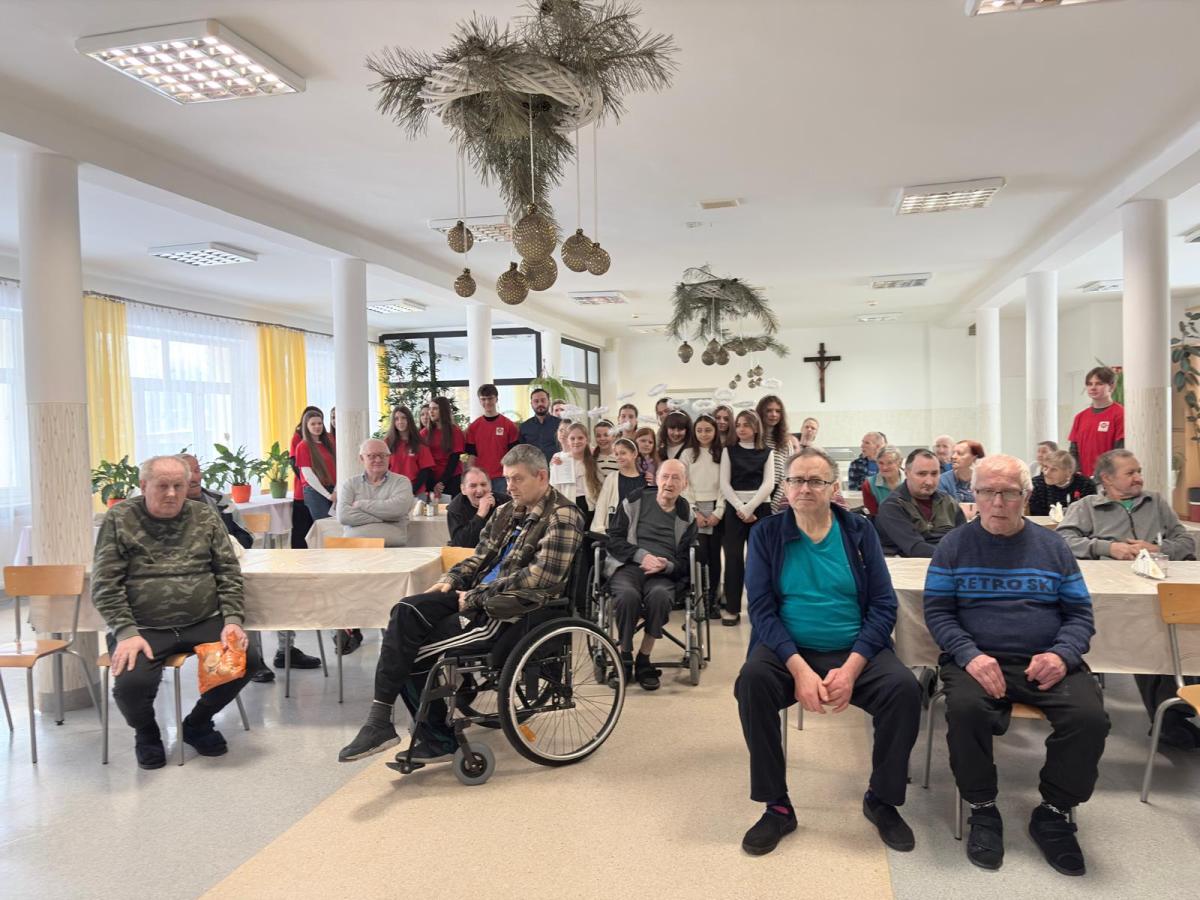 Wolontariusze Szkolnego Koła Caritas oraz Szkolny Zespół Wokalny odwiedzili w piątek mieszkańców Domu Pomocy Społecznej przy ulicy Michalusa w Gorlicach. Uczniowie zaprezentowali program słowno-muzyczny o tematyce bożonarodzeniowej. Była to okazja z jednej strony do uatrakcyjnienia codzienności Seniorom, ale też do spędzenia czasu z niejednokrotnie chorymi, słabymi, potrzebującymi wsparcia mieszkańcami naszej lokalnej społeczności. Staramy się być otwarci i wrażliwi na potrzeby innych i serdecznie dziękujemy Paniom z obsługi domu oraz jego mieszkańcom za ciepłe przyjęcie i wspólne kolędowanie.