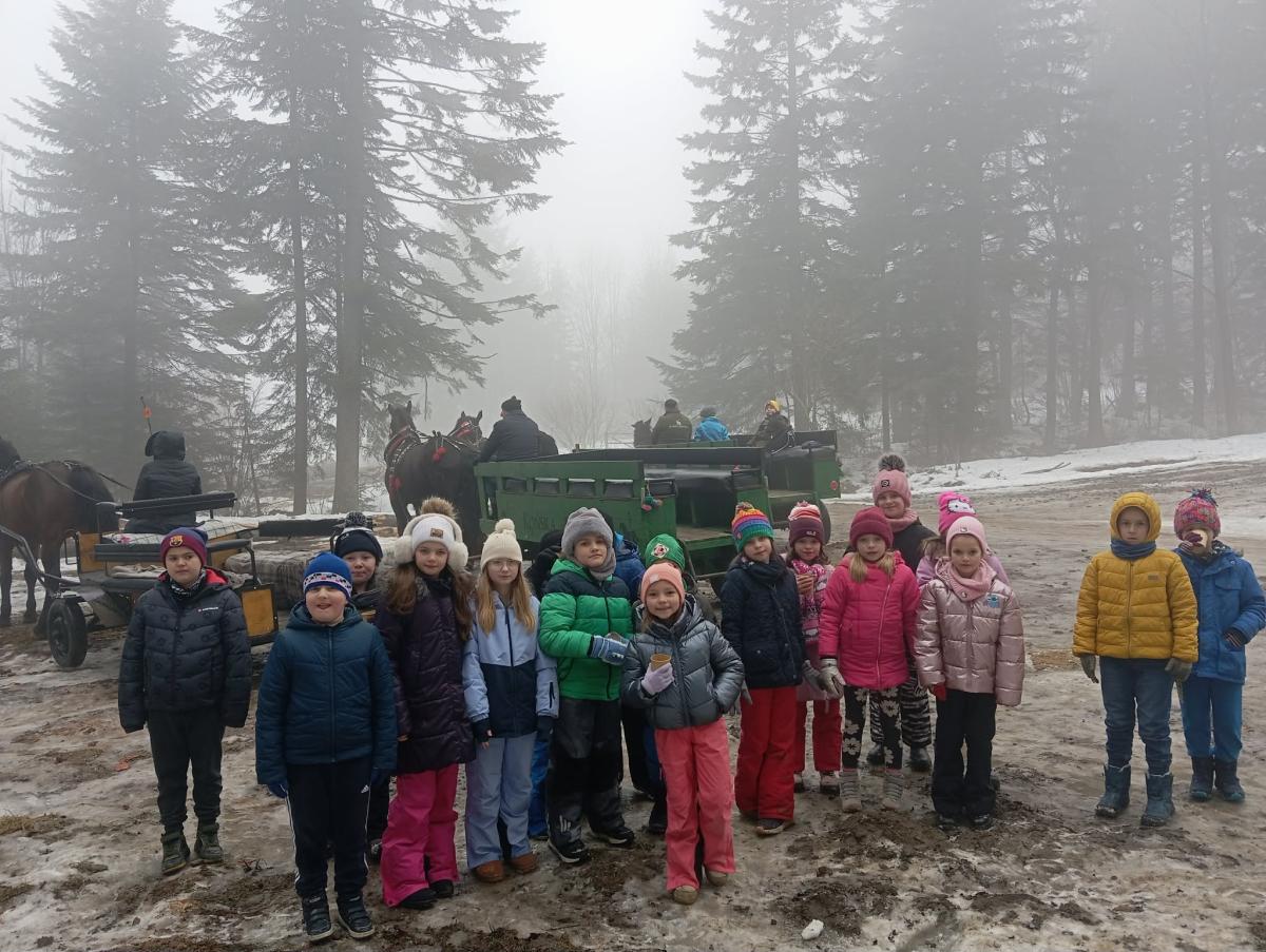 W terminie 09.02.2026 r. - 13.02.2026 r. przy wsparciu UM w Gorlicach w Naszej szkole odbyła się półkolonia dla dzieci, w której udział wzięło 15 uczniów z klas I - III. Dzieci niezwykle aktywnie spędziły ten czas gdyż program zajęć obfitował w wiele wycieczek i innych atrakcji: