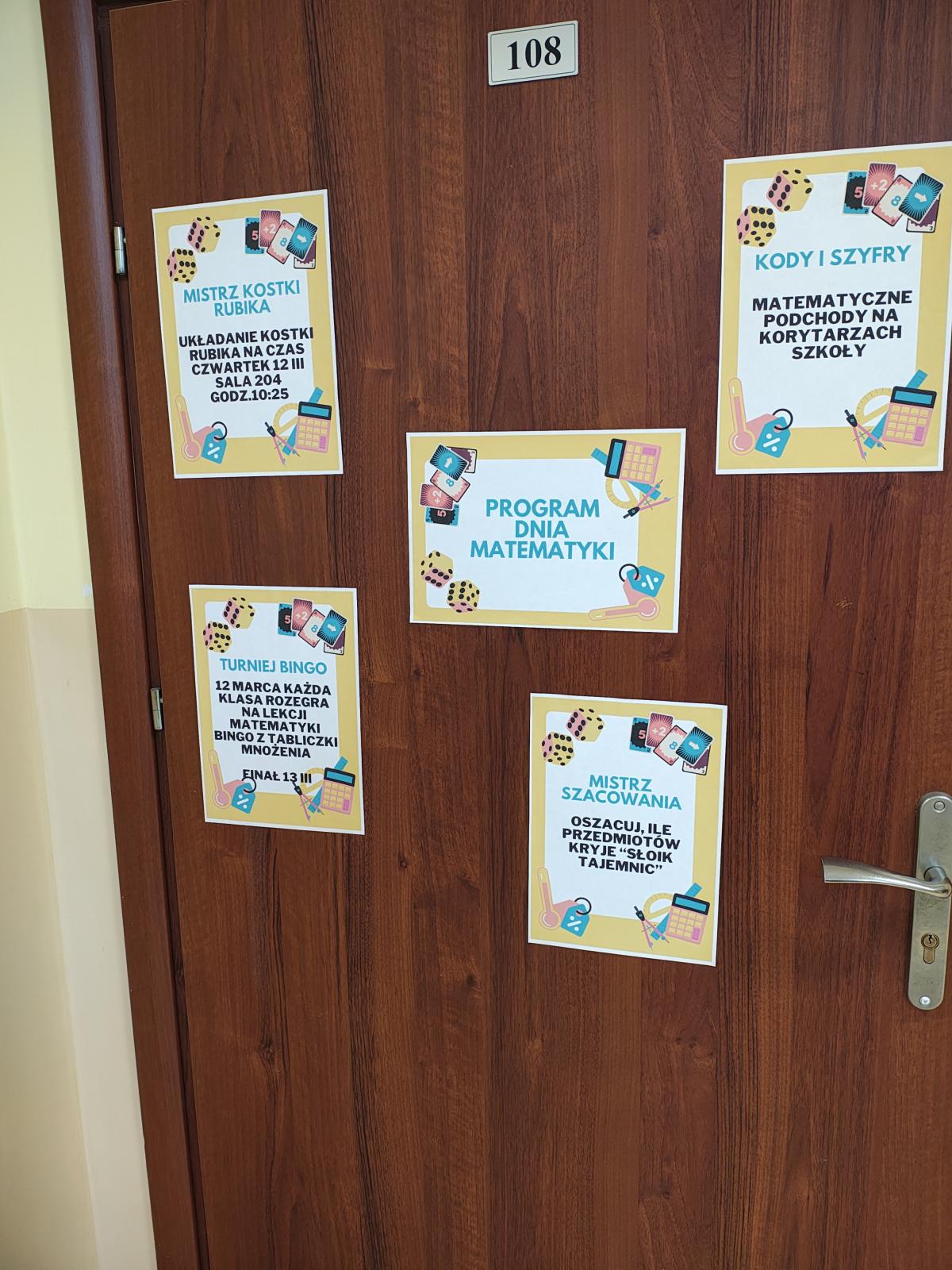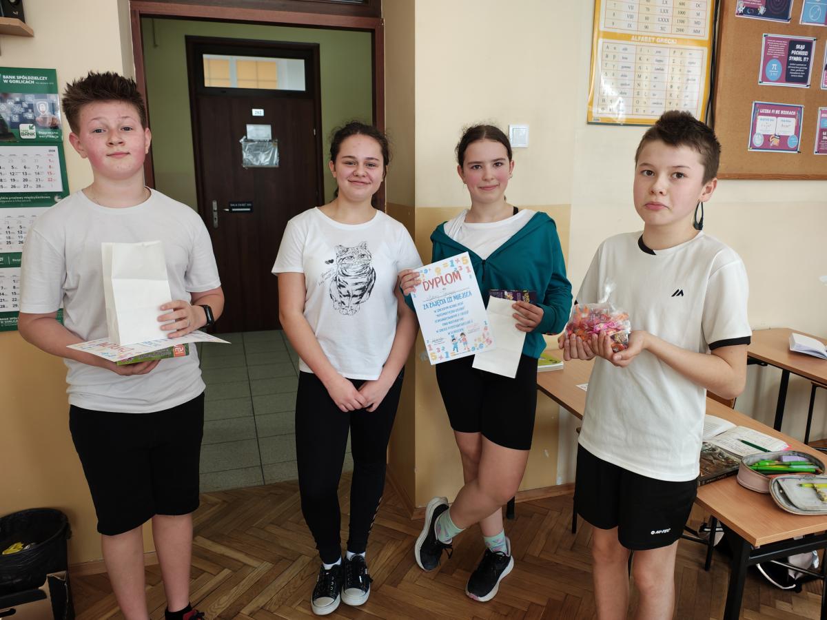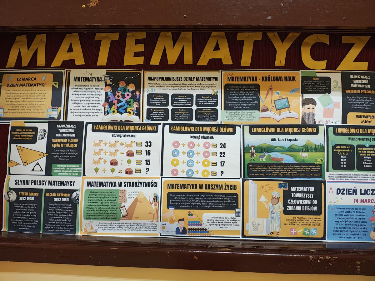 - 12 marca (Dzień Akcji): Uczniowie rywalizowali w Turnieju Bingo z tabliczką mnożenia, brali udział w matematycznych podchodach (stacje zadaniowe) oraz próbowali swoich sił w szacowaniu zawartości „Słoika Tajemnic”.