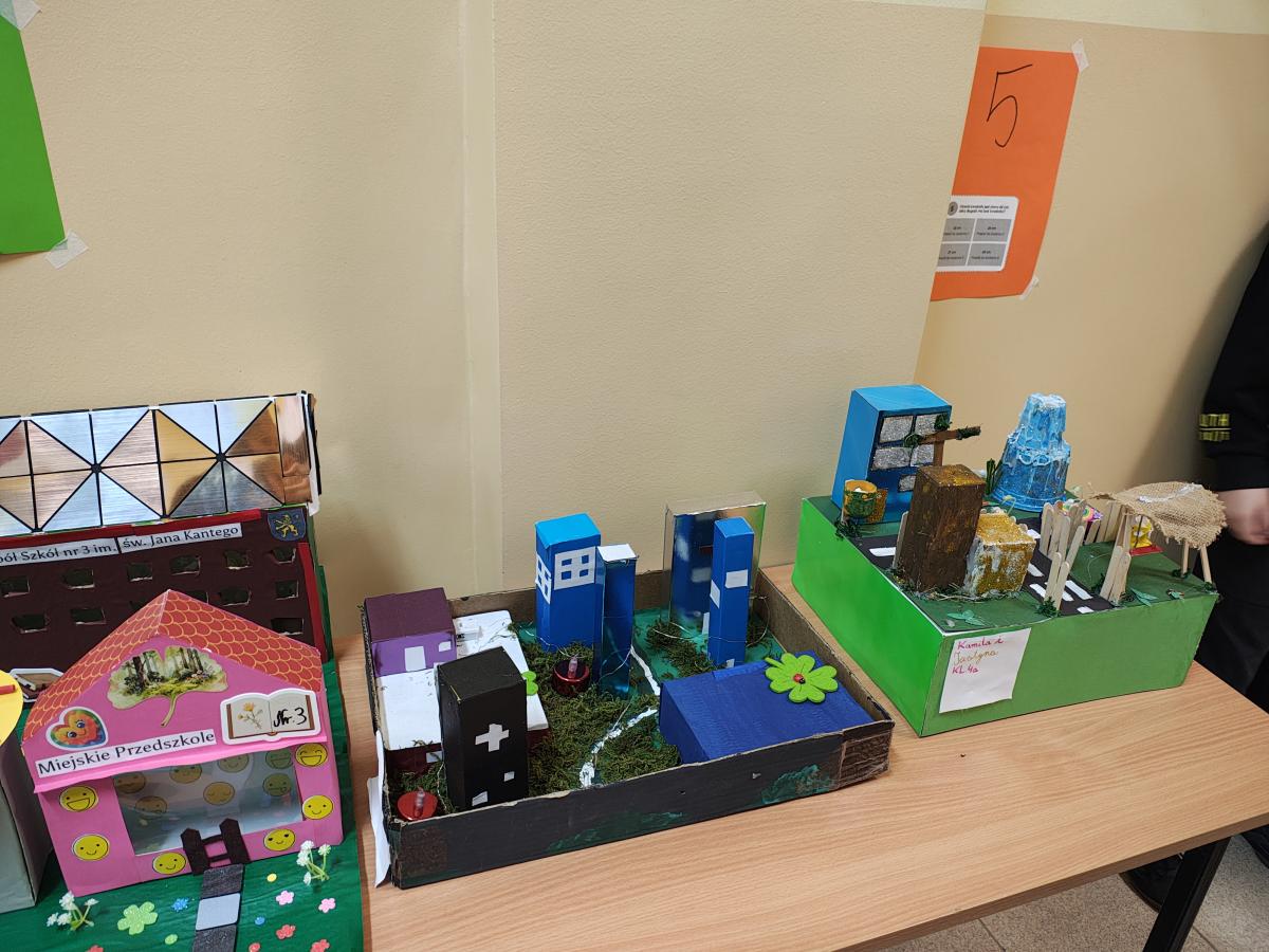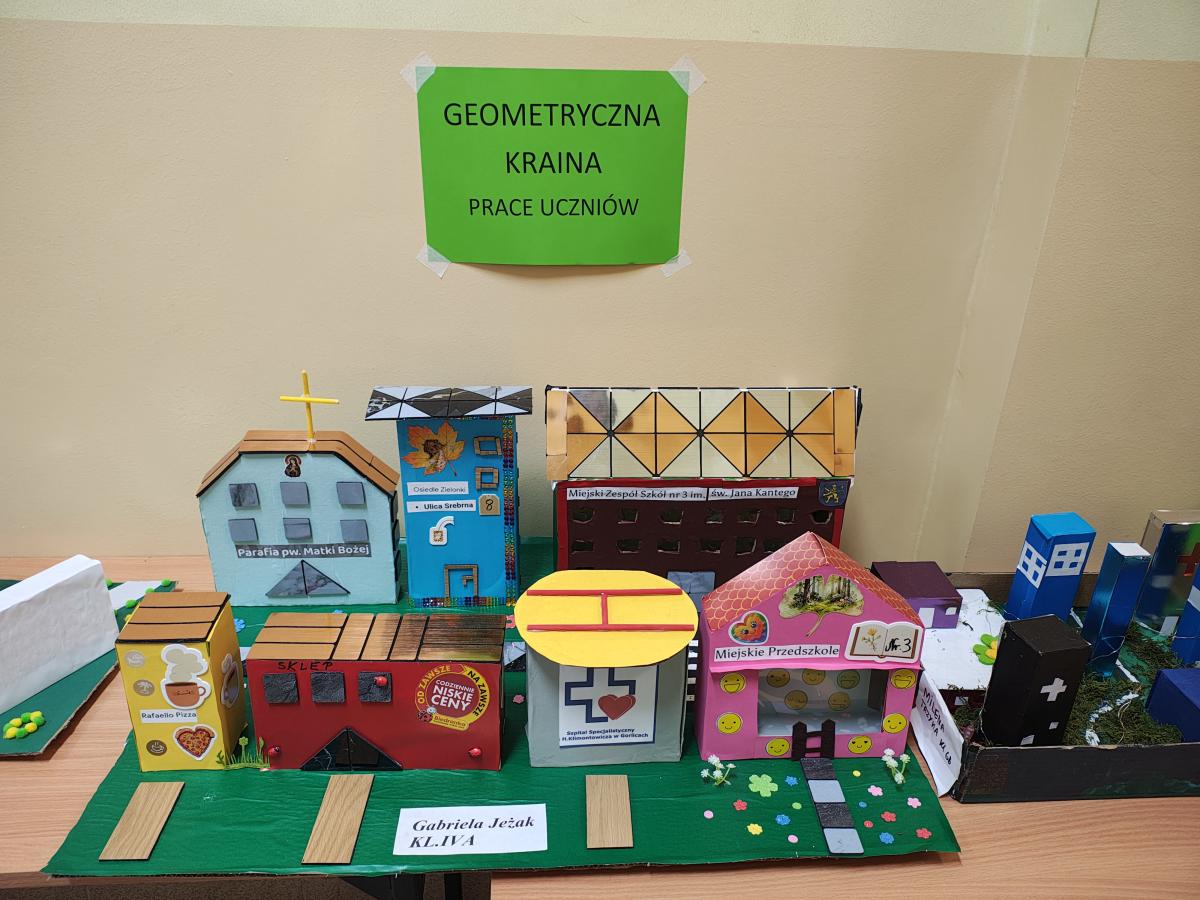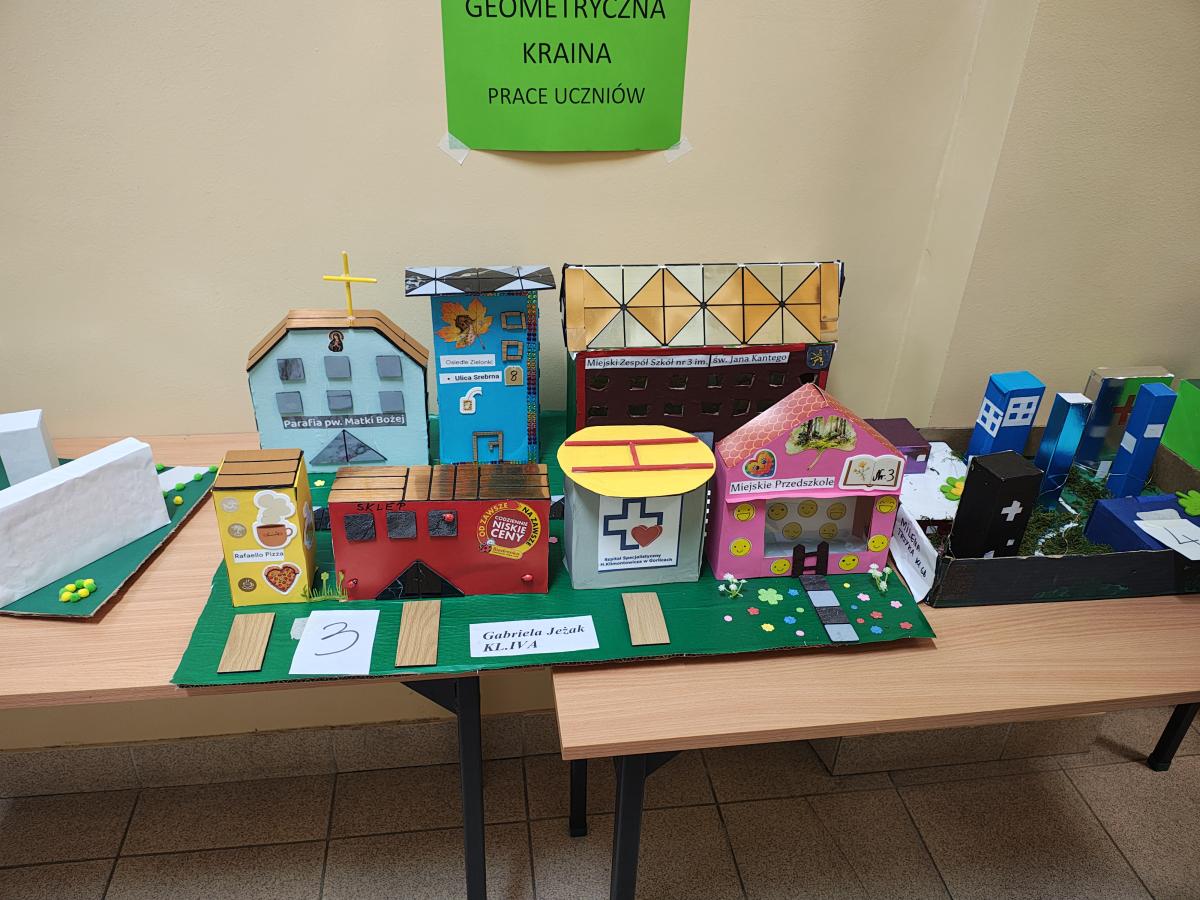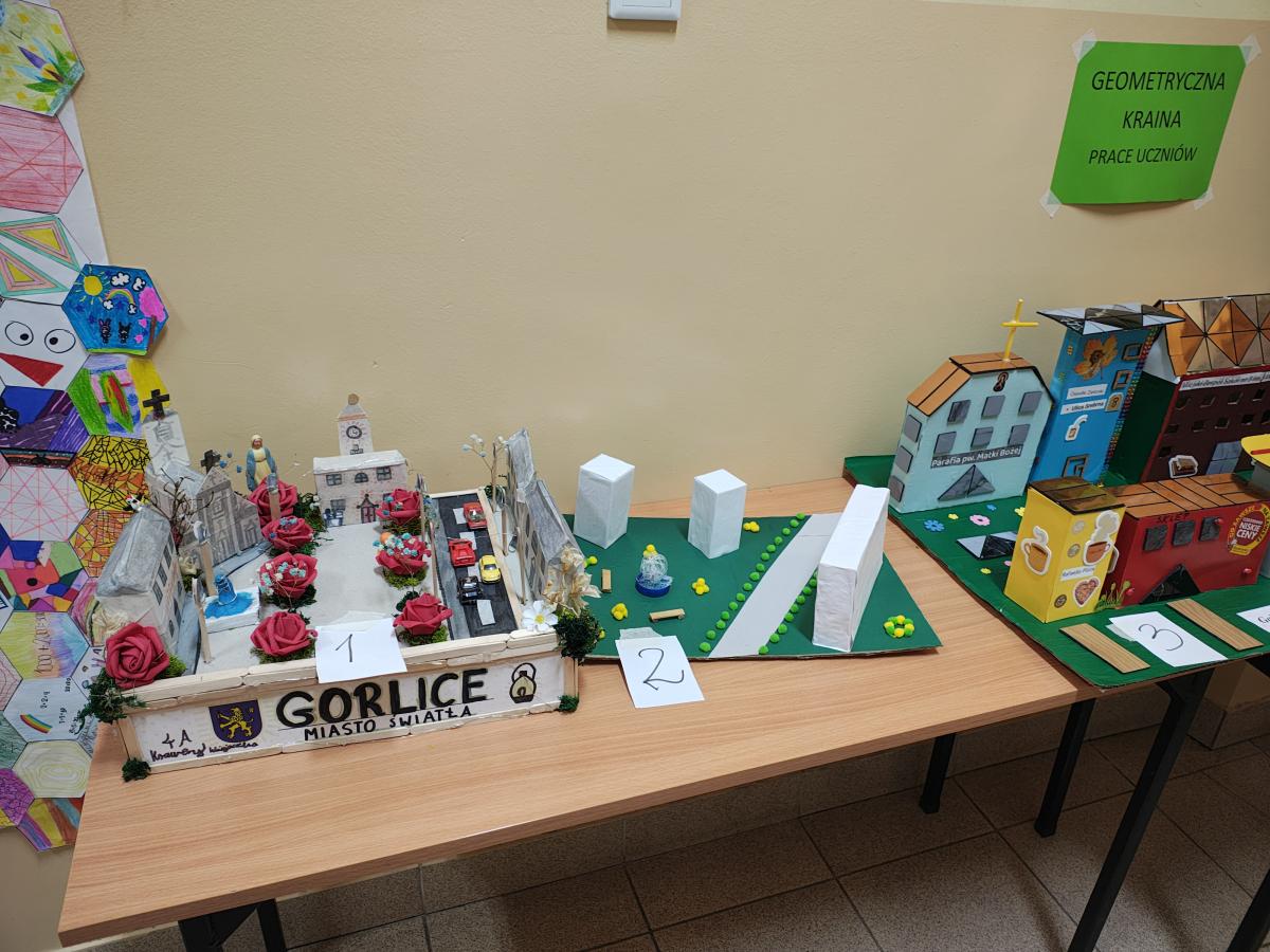 Świętowanie rozpoczęliśmy od podziwiania prac projektowych: „Geometrycznego Zwierzyńca” klas 1–3 oraz makiet „Matematycznej Krainy” i komiksów przygotowanych przez starszych uczniów. Wyjątkowym elementem był Szkolny Parkietaż – każda klasa przygotowała własne „puzzle”, które połączone na głównym korytarzu stworzyły imponujący, wspólny wzór.