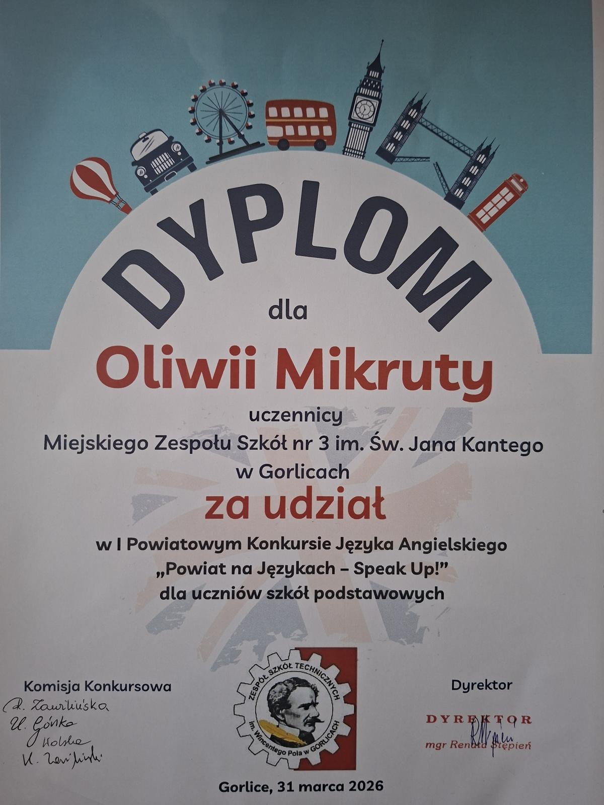 Miło nam poinformować, że nasi uczniowie godnie reprezentowali szkołę w I Powiatowym Konkursie Języka Angielskiego „Speak Up!”, zorganizowanym przez ZST w Gorlicach.