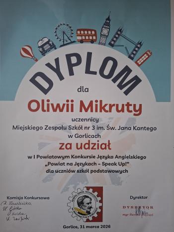 Galerie zdjęć Powiatowy Konkurs Języka Angielskiego „Speak Up!” 8.04.2026 Prace uczniów w ramach projektu "Edukacja włączająca w gorlickich szkołach podstawowych" 22.03.2026 projekt 3 marzec 26 matma 22.03.2026 projekt2 marzec 26 22.03.2026 Dzień Matematyki 2026 22.03.2026 Góra grosza 26 15.03.2026 Bal karnawałowy 2026 23.02.2026 Zimowisko 2026 16.02.2026 Odwiedziny w Domu Pomocy Społecznej 26.01.2026 Zawody łyżwiarskie 26.01.2026 projekt1 15.01.2026 młodyratownik 15.01.2026 Wycieczka klas 4a, 4b i 5a do Krosna z okazji Mikołajek 11.12.2025 Spotkanie Mikołajowe w Dziennym Domu Seniora 9.12.2025 Z wizytą na Zielonym Wzgórzu 25.11.2025 Tajemnice pracy korektora - zajęcia warsztatowe z mamą uczennicy z klasy 1 a 20.11.2025 Apel z okazji Narodowego Święta Niepodległości – lekcja historii i wzruszeń 13.11.2025 Rajd integr 2025 3.11.2025 Uroczystość pasowania uczniów klasy pierwszej połączona z obchodami 130-lecia szkoły 30.10.2025 130 lat naszej szkoły – jubileusz pełen wspomnień, wzruszeń i radości 27.10.2025